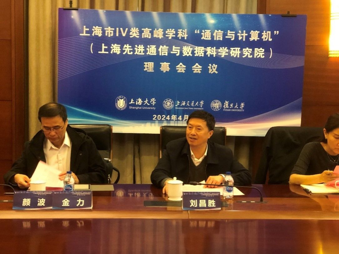 2024年4月22日下午,上海IV類高峰學(xué)科“通信與計(jì)算機(jī)”(上海先進(jìn)通信與數(shù)據(jù)科學(xué)研究院)理事會(huì)會(huì)議在上海大學(xué)寶山校區(qū)舉行,上海市教委科研處調(diào)研員賀偉偉出席本次理事會(huì)會(huì)議并指導(dǎo)工作,研究院理事會(huì)理事長(zhǎng)、上海大學(xué)校長(zhǎng)劉昌勝院士主持本次會(huì)議,理事會(huì)副理事長(zhǎng)、理事、院長(zhǎng)、執(zhí)行委員會(huì)委員以及協(xié)同高校上海交通大學(xué)、復(fù)旦大學(xué)代表參加會(huì)議。