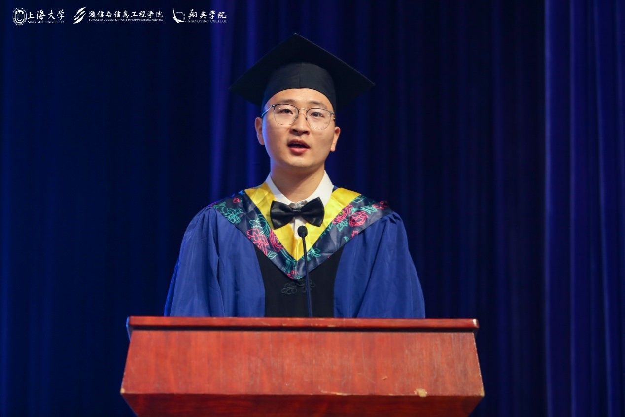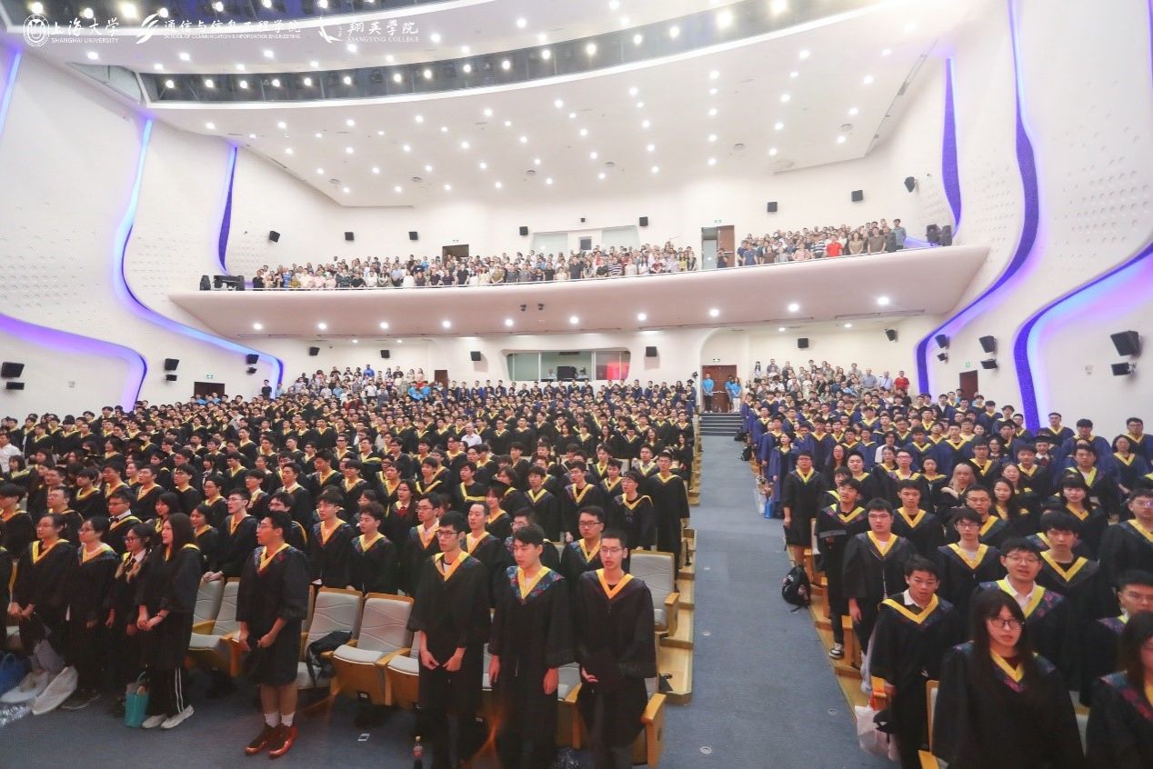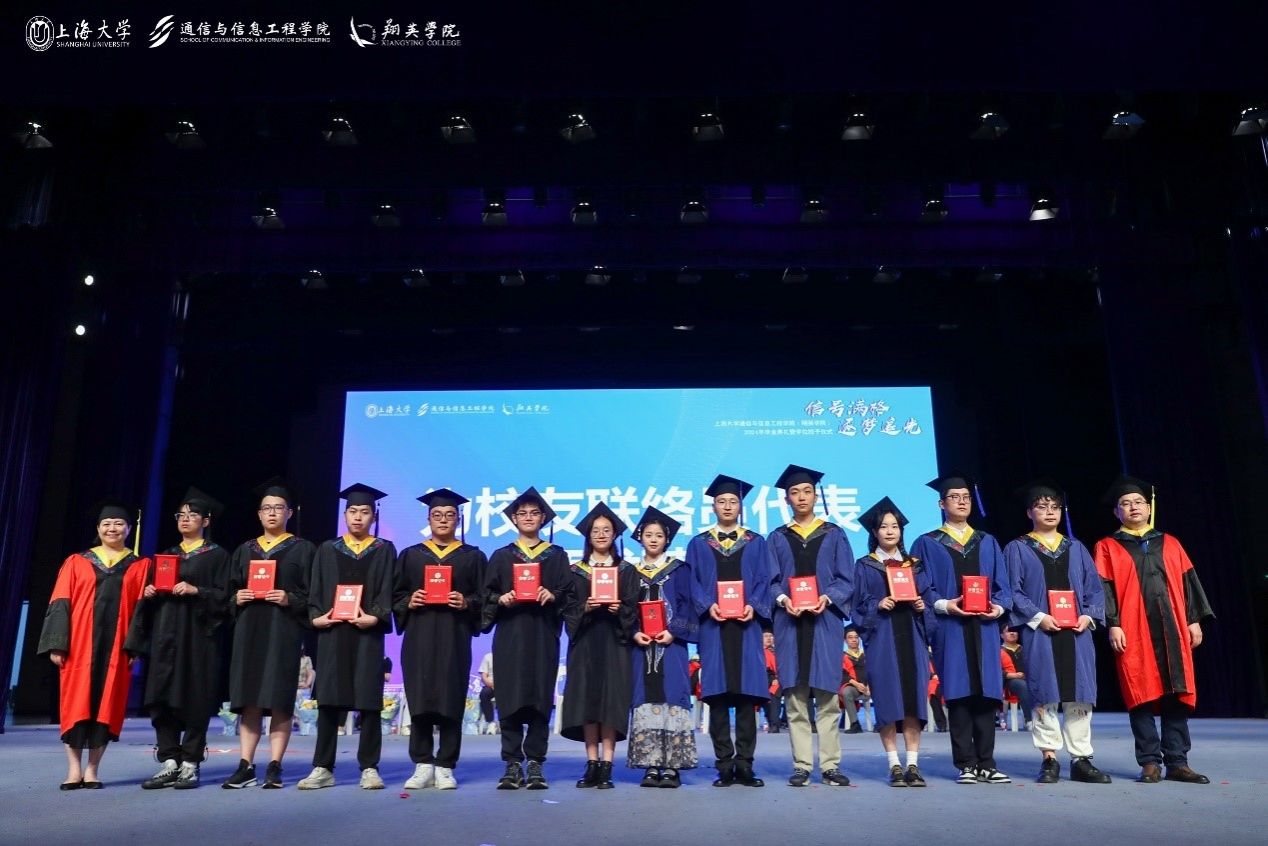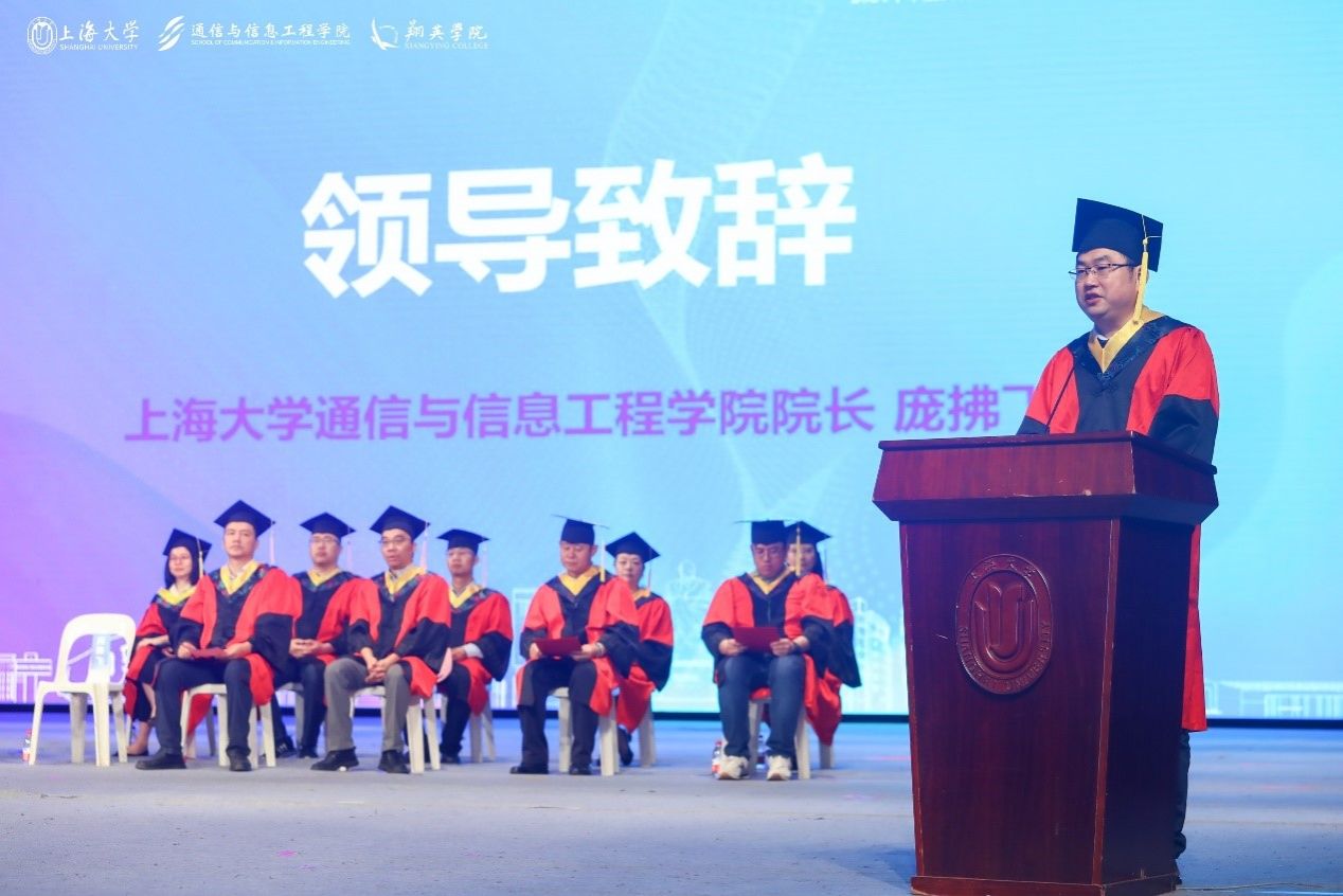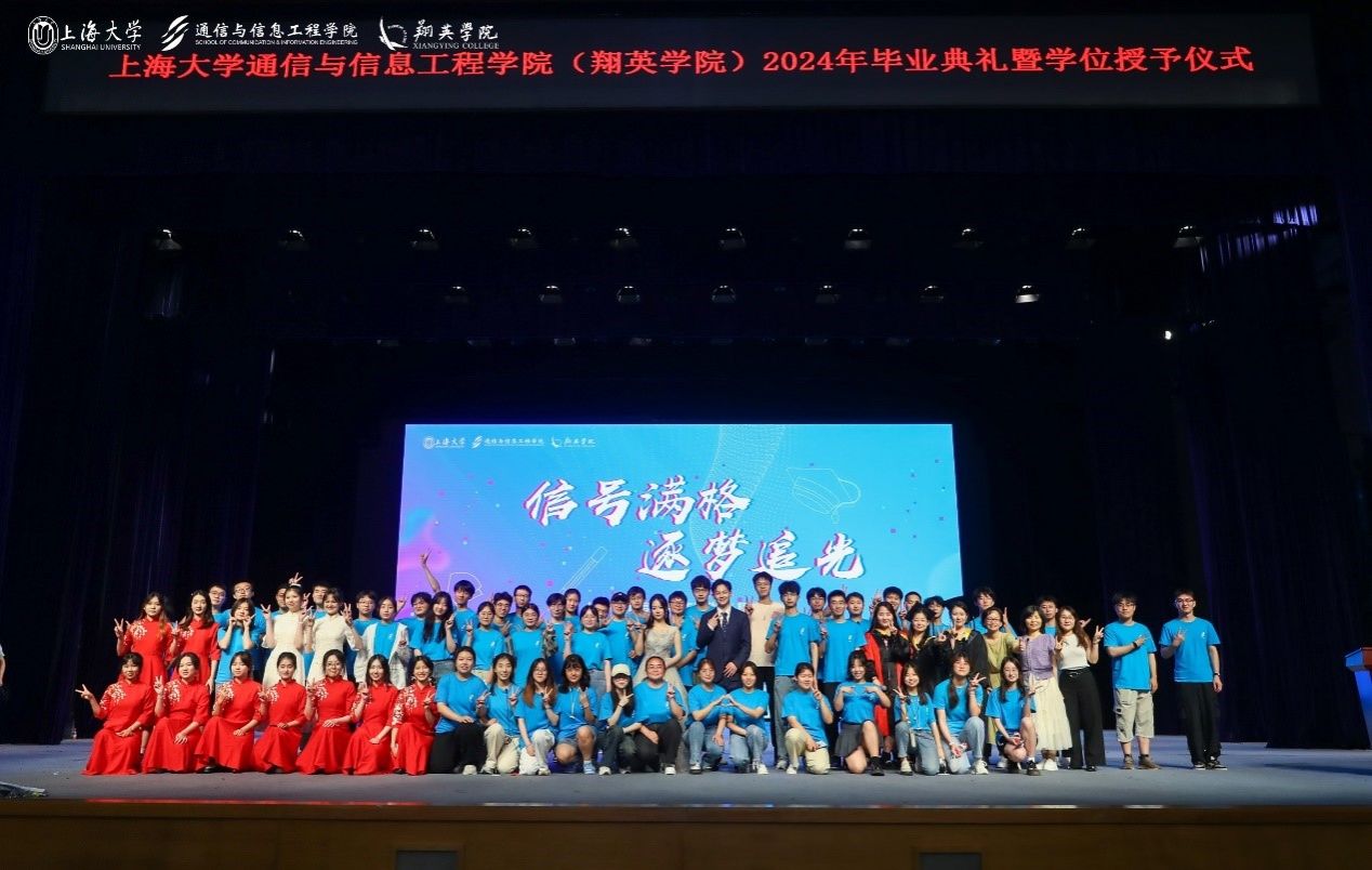 6月21日上午,9999js金沙老品牌(翔英學院)2024年畢業(yè)典禮暨學位授予儀式在上海大學偉長樓隆重舉行。上海大學黨委副書記、副校長胡大偉老師,9999js金沙老品牌黨委書記黃素娟老師,9999js金沙老品牌黨委副書記、院長龐拂飛老師等院系領導,翔英學院理事會理事金同康先生、彭章友先生,導師代表、班主任、輔導員、2024屆全體畢業(yè)生及學生家長歡聚一堂,共同見證通信青年學子開啟人生的全新篇章。此次畢業(yè)典禮由2024屆本科畢業(yè)生戈羽蝶和研究生畢業(yè)生黃知雨主持。
