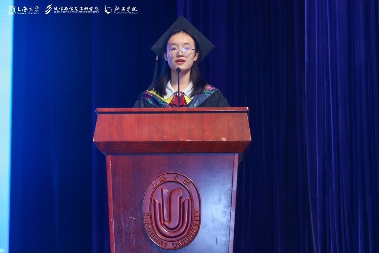 2024屆本科畢業(yè)生的優(yōu)秀代表郭博慧同學,滿載同窗之托,慷慨陳詞。她代表全體畢業(yè)生向長期以來對學生悉心培養(yǎng)、關懷備至的老師們,表達了最為深切的敬仰與感激之情。同時激勵在場的所有通信學子,要勇于肩負起時代的重責,懷抱不畏艱難、無懼風雨的勇氣,以壯志凌云的姿態(tài),毅然邁向那個既充滿未知又飽含機遇的未來。