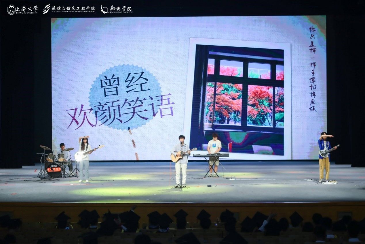由2024屆畢業(yè)生何宗瑾、滕非凡、劉奕赫、張博偉、白郅昂組建的音創(chuàng)樂隊,于畢業(yè)之際傾情獻上歌曲聯(lián)唱——《我的名字》與《你曾是少年》。他們的音樂如同熾熱的火焰,點燃了整個會場,引領著在場的畢業(yè)生們穿越回那段閃亮的日子,重拾那些關于夢想、友情與成長的記憶。