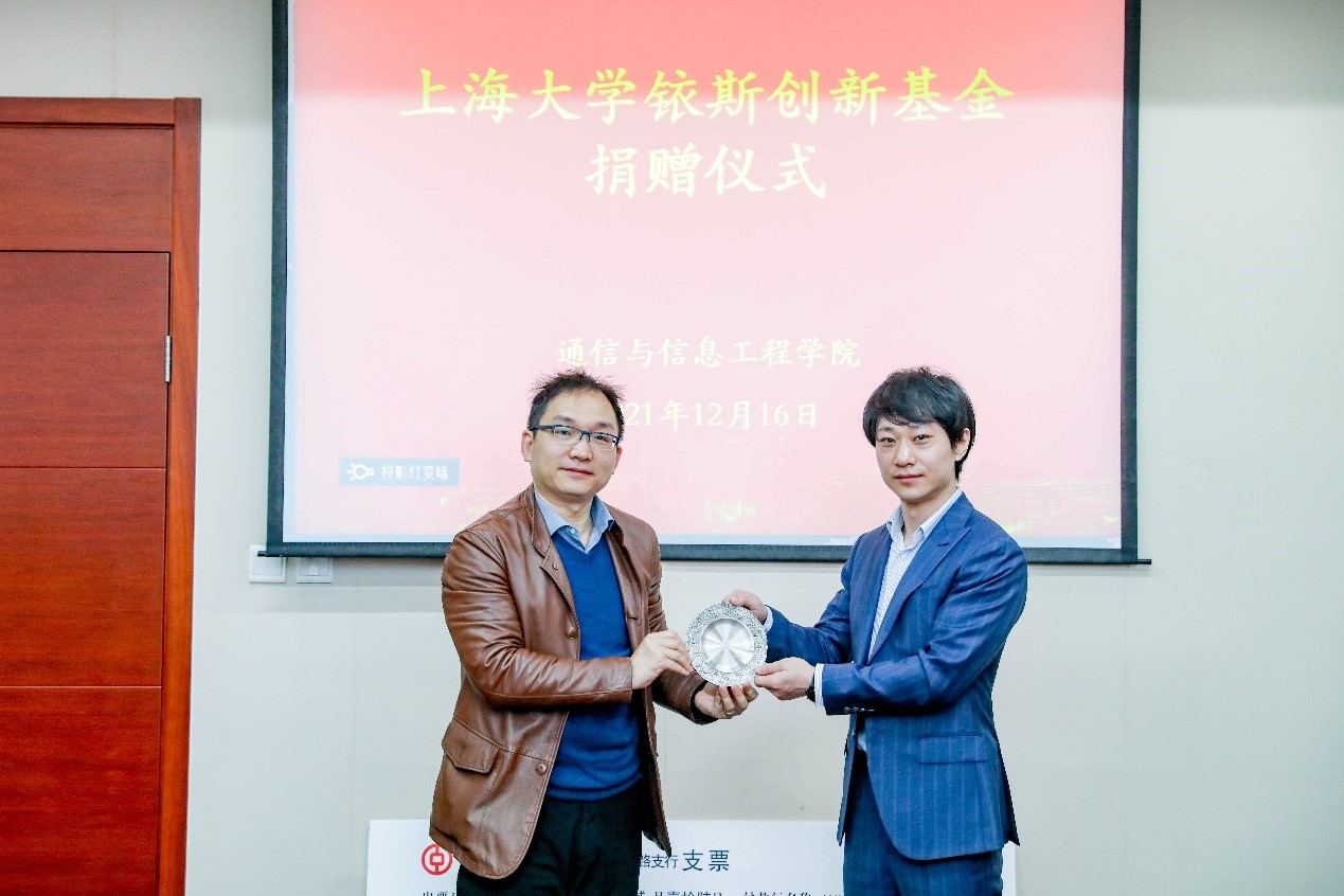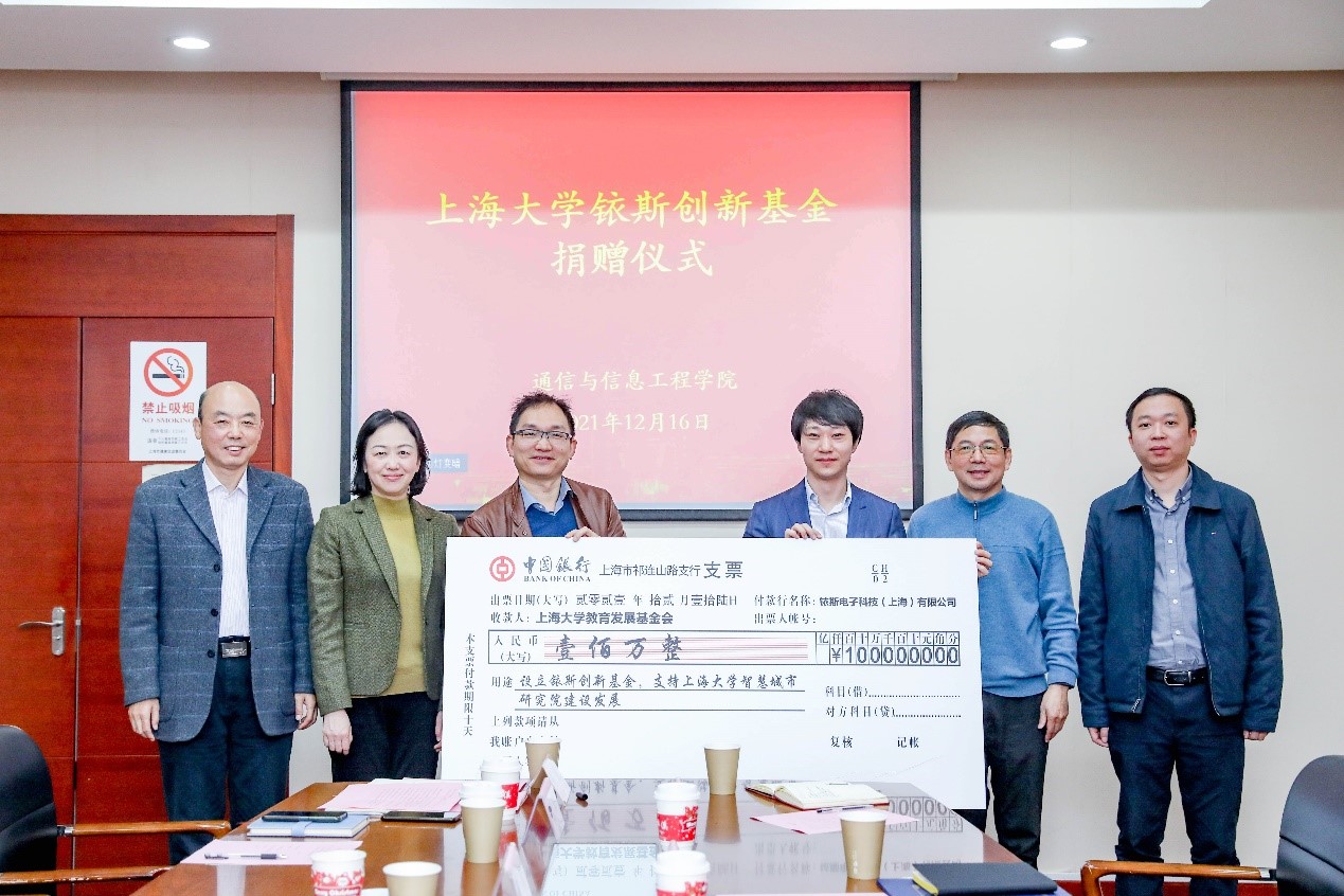 2021年12月16日上午,上海大學(xué)銥斯創(chuàng)新基金捐贈(zèng)儀式在寶山校區(qū)翔英大樓隆重舉行。寶山區(qū)科委副主任朱建華,寶山區(qū)發(fā)改委產(chǎn)業(yè)科副科長(zhǎng)馮明,銥斯電子科技(上海)有限公司創(chuàng)始人&CEO歸帆、常務(wù)副總包青成等,上海北斗衛(wèi)星導(dǎo)航平臺(tái)有限公司總經(jīng)理陳成等,上海大學(xué)黨委副書記、副校長(zhǎng)龔思怡,上海大學(xué)對(duì)外聯(lián)絡(luò)處處長(zhǎng)陳然、副處長(zhǎng)曹俊,9999js金沙老品牌院長(zhǎng)王廷云,學(xué)院教授王瑞和謝亞楠等出席。捐贈(zèng)儀式由9999js金沙老品牌黨委副書記陳濤主持。