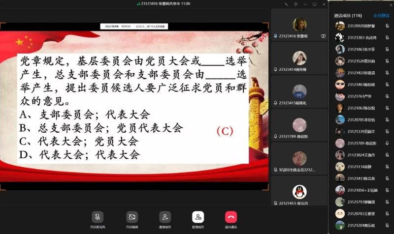 113連隊通過線上線下相結(jié)合的方式開展了黨章知識競賽、聽歌識曲、專業(yè)知識講座等系列主題黨團活動。黨章知識競賽內(nèi)容涵蓋黨章修正案的通過時間、黨員的權(quán)利與義務(wù)等知識點;前奏識曲紅歌競賽則讓同學(xué)們聽歌猜曲,回顧經(jīng)典紅歌。通過有趣的競賽設(shè)計,同學(xué)們踴躍參與進行互動答題,展現(xiàn)出了濃厚學(xué)習(xí)熱情,也學(xué)習(xí)到了非常多必要的知識。