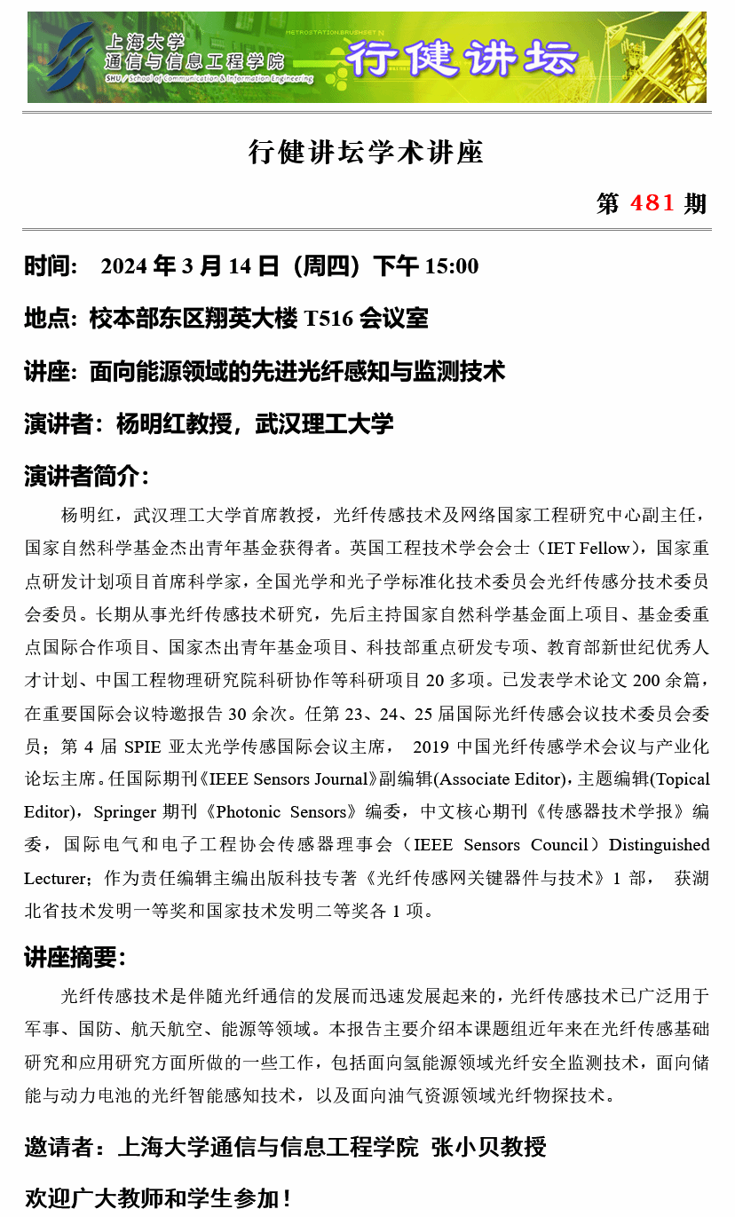 上一條:行健講壇 №482 -光纖傳感和儀器在生物醫(yī)學(xué)中的應(yīng)用 下一條:行健講壇 №480 -光纖光聲氣體傳感技術(shù)及應(yīng)用