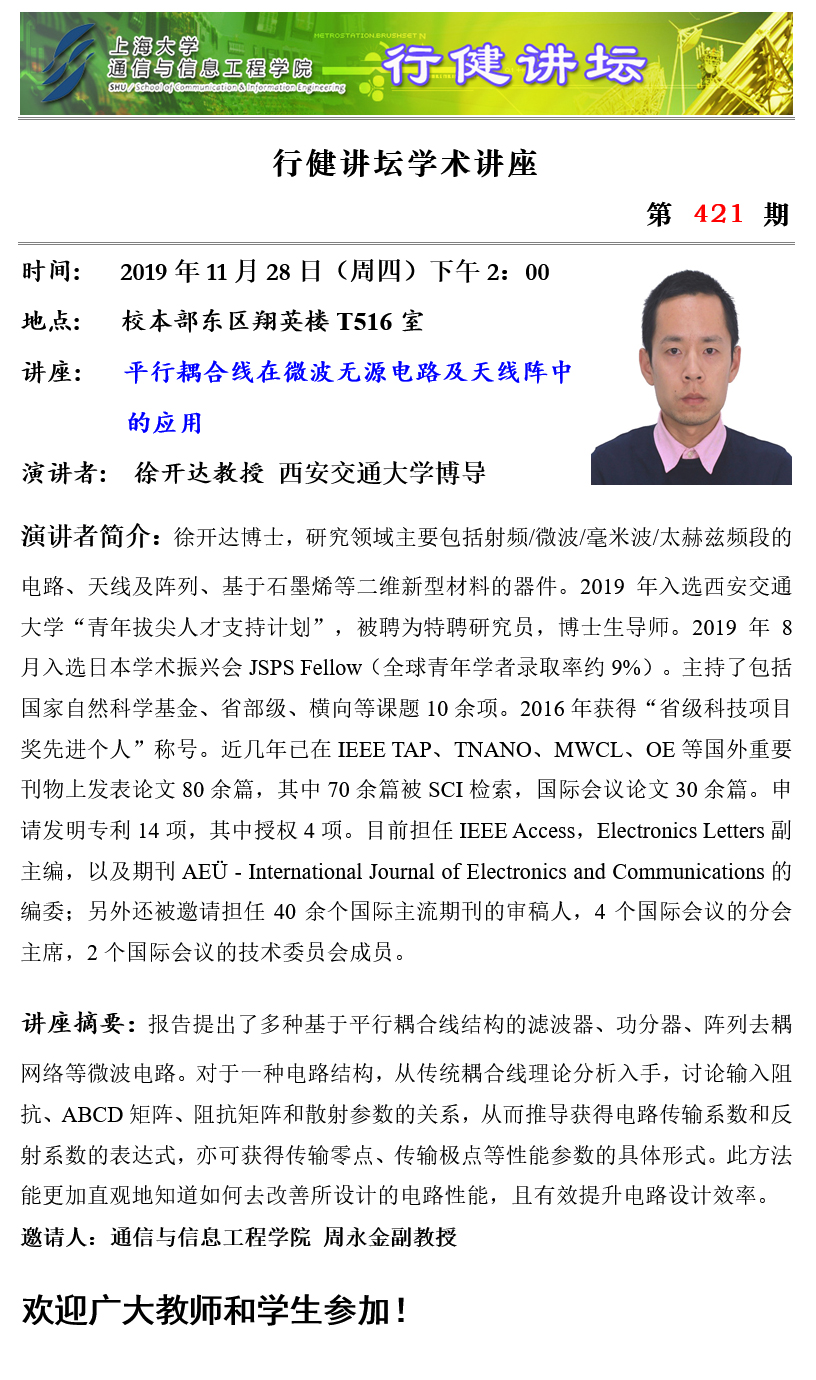 上一條:行健講壇 №422 -漫談知識(shí)產(chǎn)權(quán)的保護(hù)與鑒定 下一條:行健講壇 №420 -人工表面等離激元傳輸特性分析及應(yīng)用