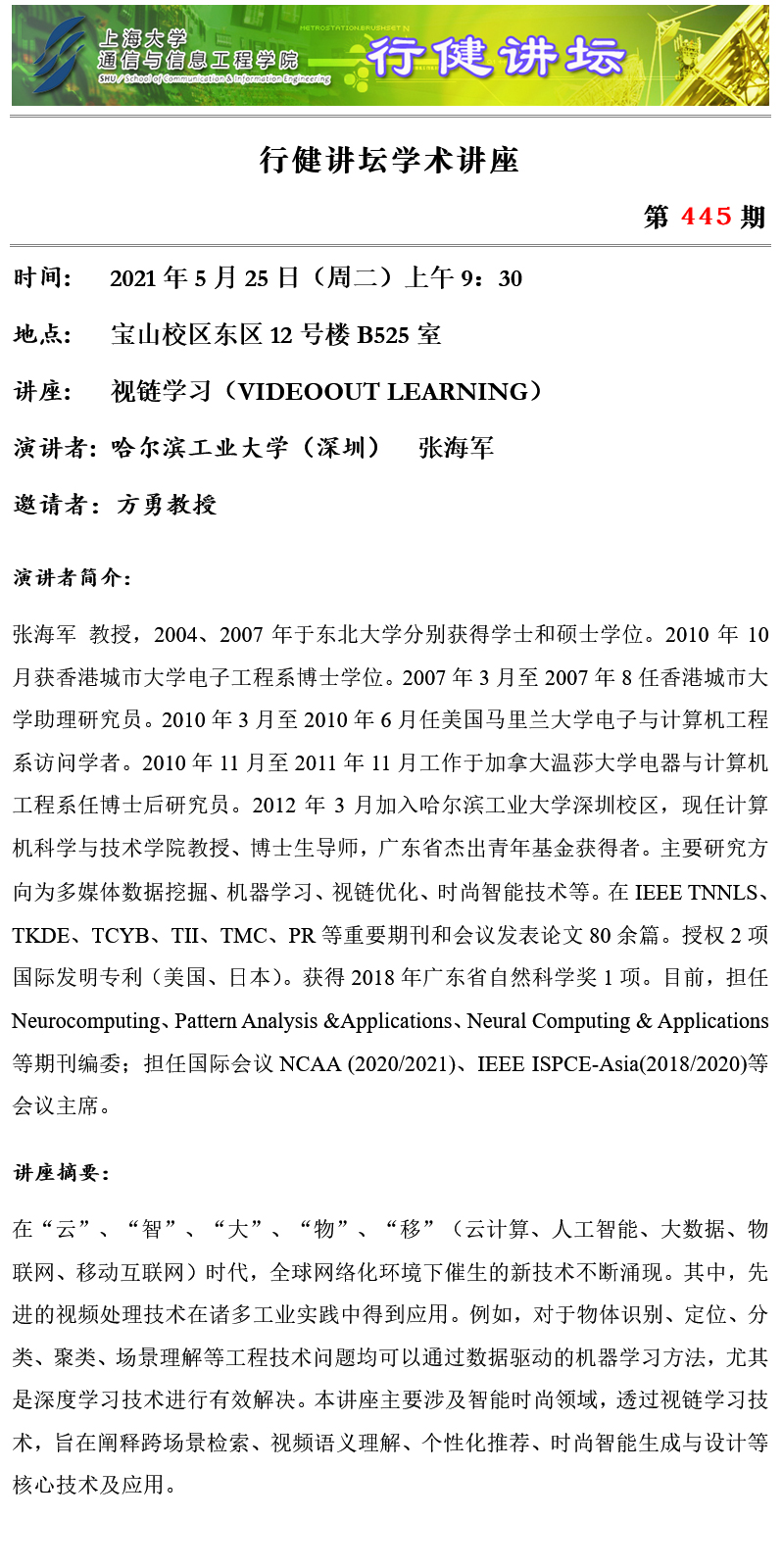 上一條:行健講壇 №446 -5G發(fā)展趨勢及5G生態(tài)圈人才建設 下一條:行健講壇 №444 -數(shù)據驅動的系統(tǒng)優(yōu)化
